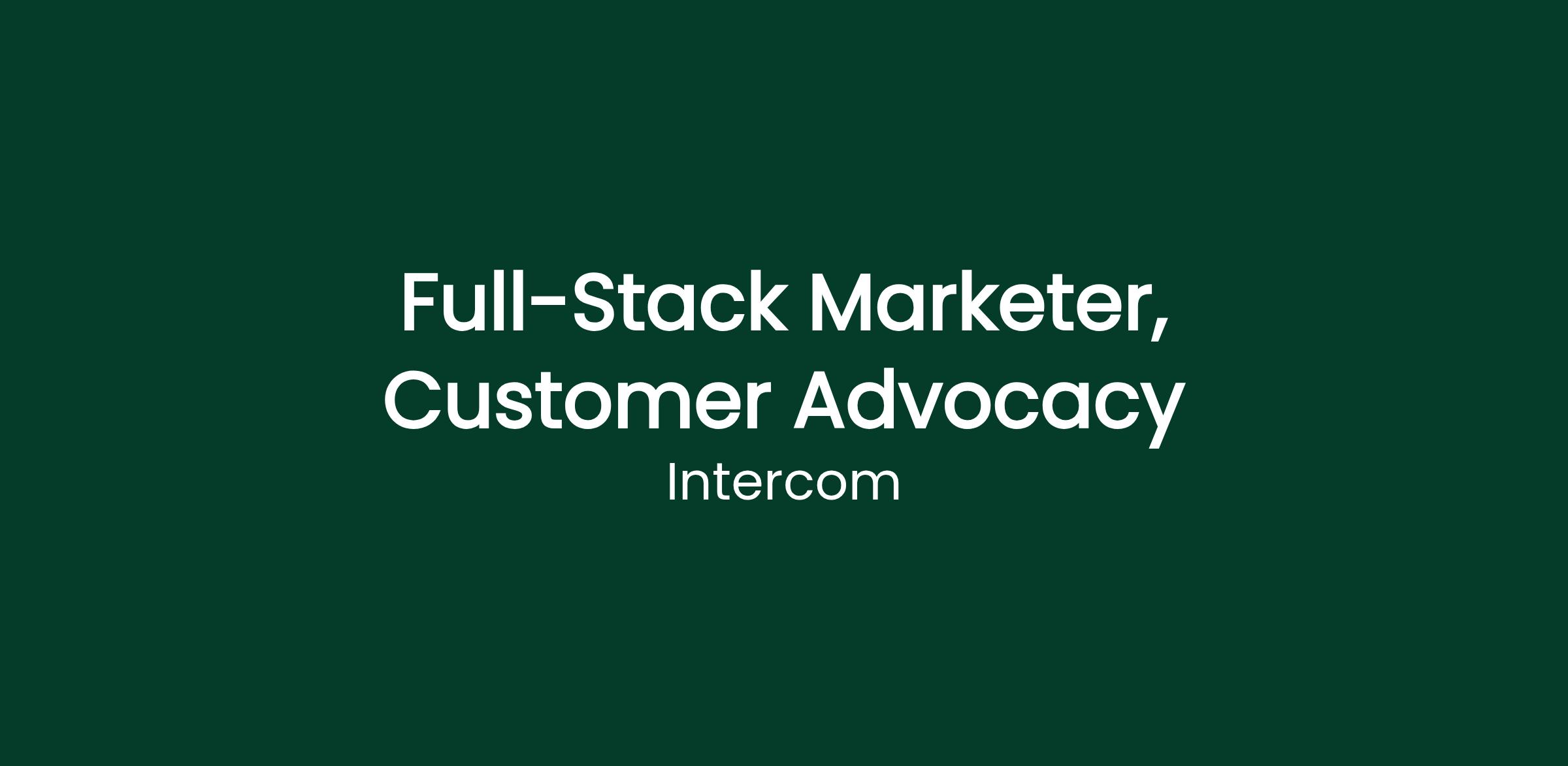 Full-Stack Marketer, Customer Advocacy