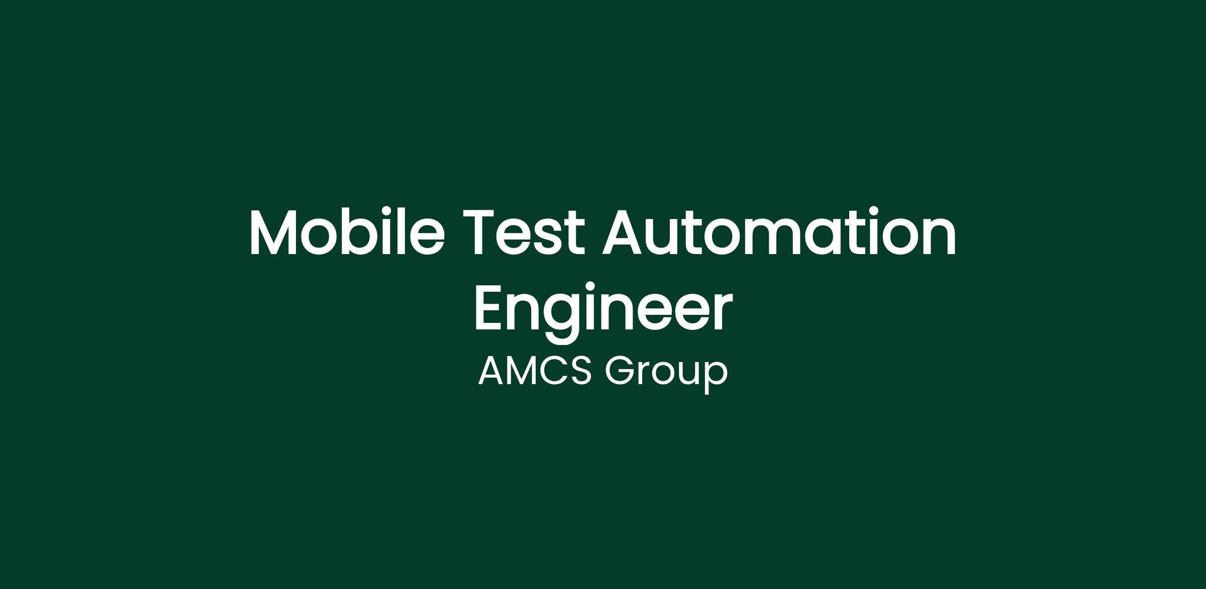 Are you passionate about building high-quality software through robust testing? We’re looking for a Mobile Test Automation Engineer to join Selected Interventions, now part of the AMCS Group, a global leader in environmental software.