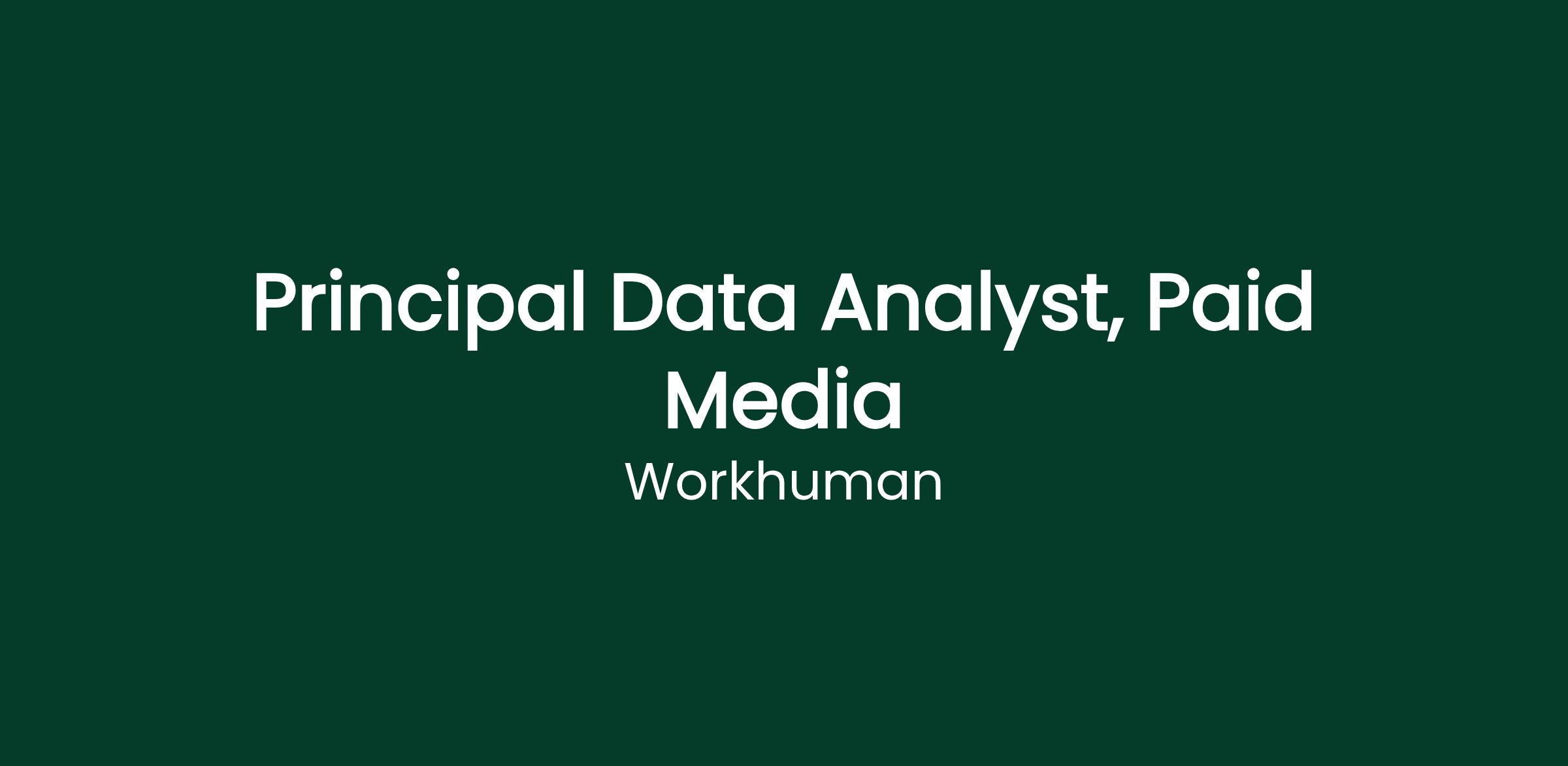 Join the Business Analytics team at Workhuman, where we sit at the core of the organization, driving strategy and decision-making through data. We are bringing paid media execution & analytics in-house and seeking a Principal Data Analyst to fully own the in-housing of all analytics and ad operations for our Paid Media strategy across search, social, display, and video.