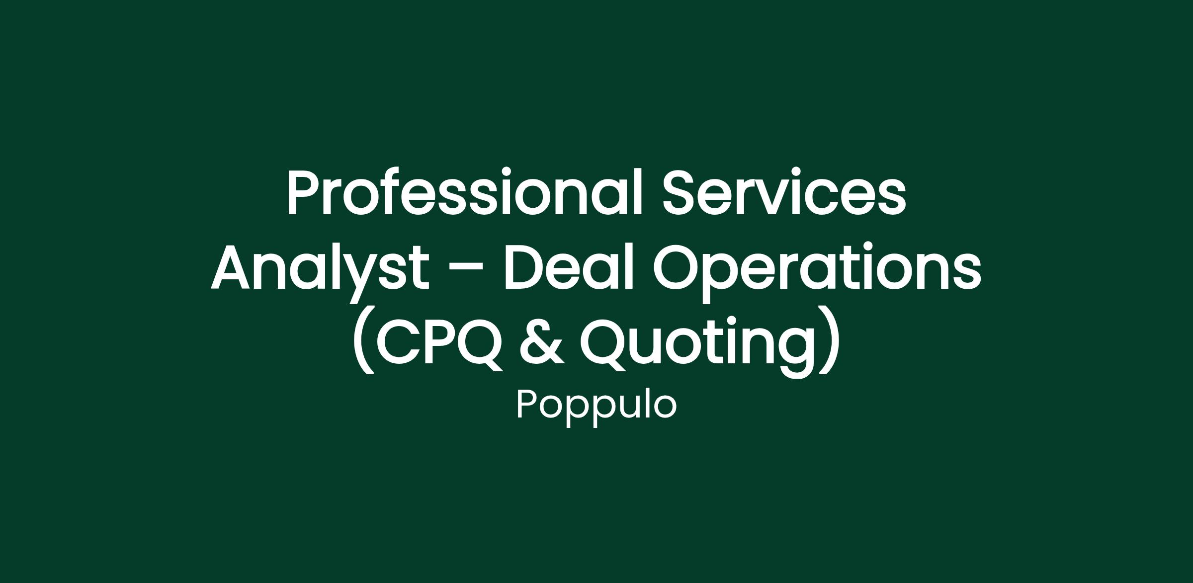 The Professional Services Analyst – Deal Operations (CPQ & Quoting) is an integral member of the Professional Services (PS) team, providing essential support to Sales, Enablement, and Professional Services leadership to enhance quoting efficiency and accelerate deal velocity. Acting as an internal advocate for the Professional Services organization, the SC I ensures that service offerings are accurately represented in quotes and aligned with approved standards, processes, and pricing policies.