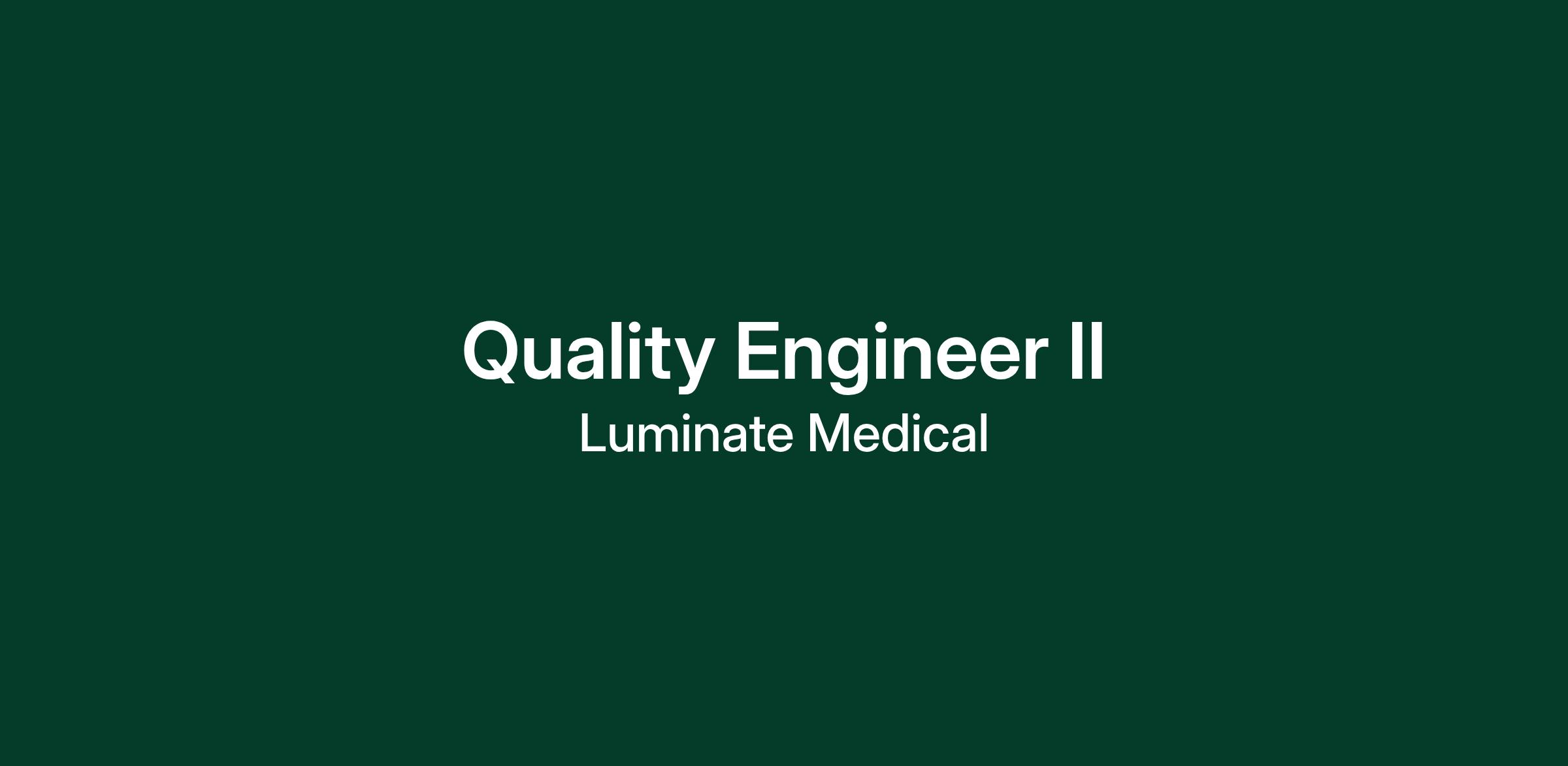 We're looking for a Quality Engineer II to support our expanding Quality function. This role is pivotal in ensuring quality, compliance, efficiency, and scalability as the company transitions from development to commercial stage. Above all, you will need to enjoy working in a fast-paced environment, be passionate about working with people, and thrive in taking responsibility for delivering projects on-time to make real world patient impact.