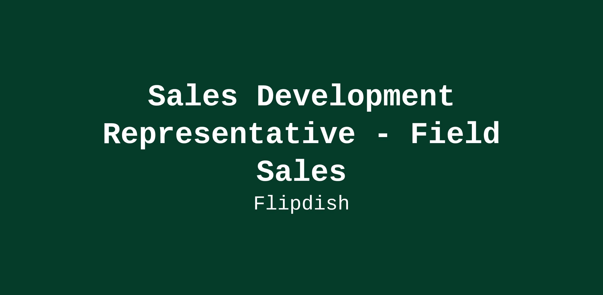 Sales Development Representative - Field Sales