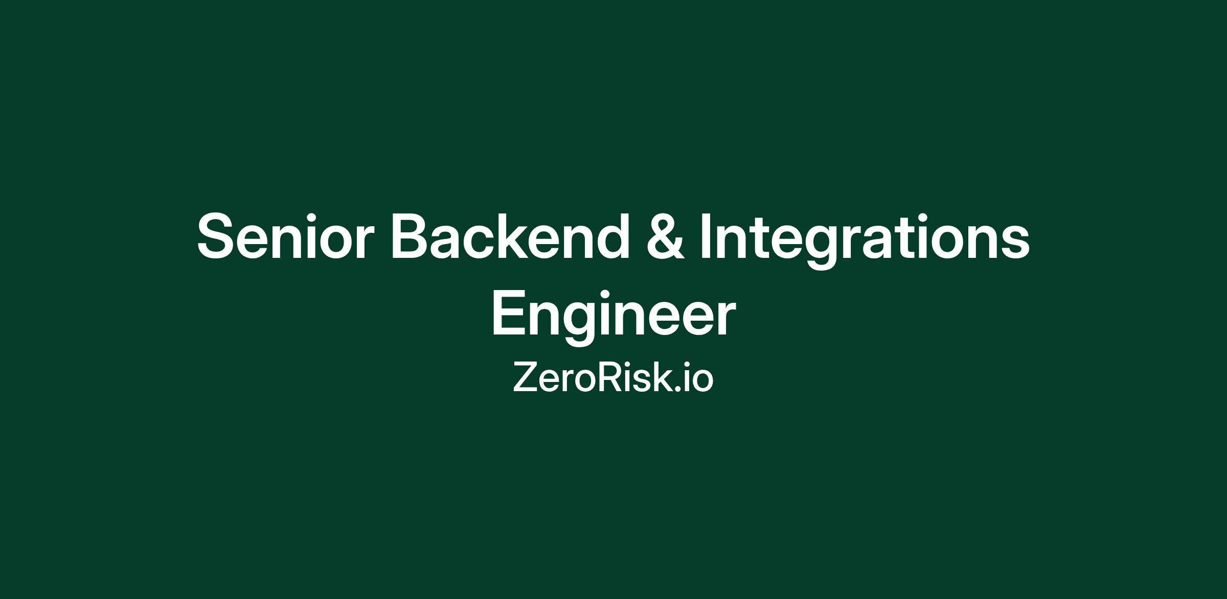 We are hiring a Senior Backend & Integrations Engineer to lead the development, evolution, and governance of all integrations across the ZeroRisk platform.