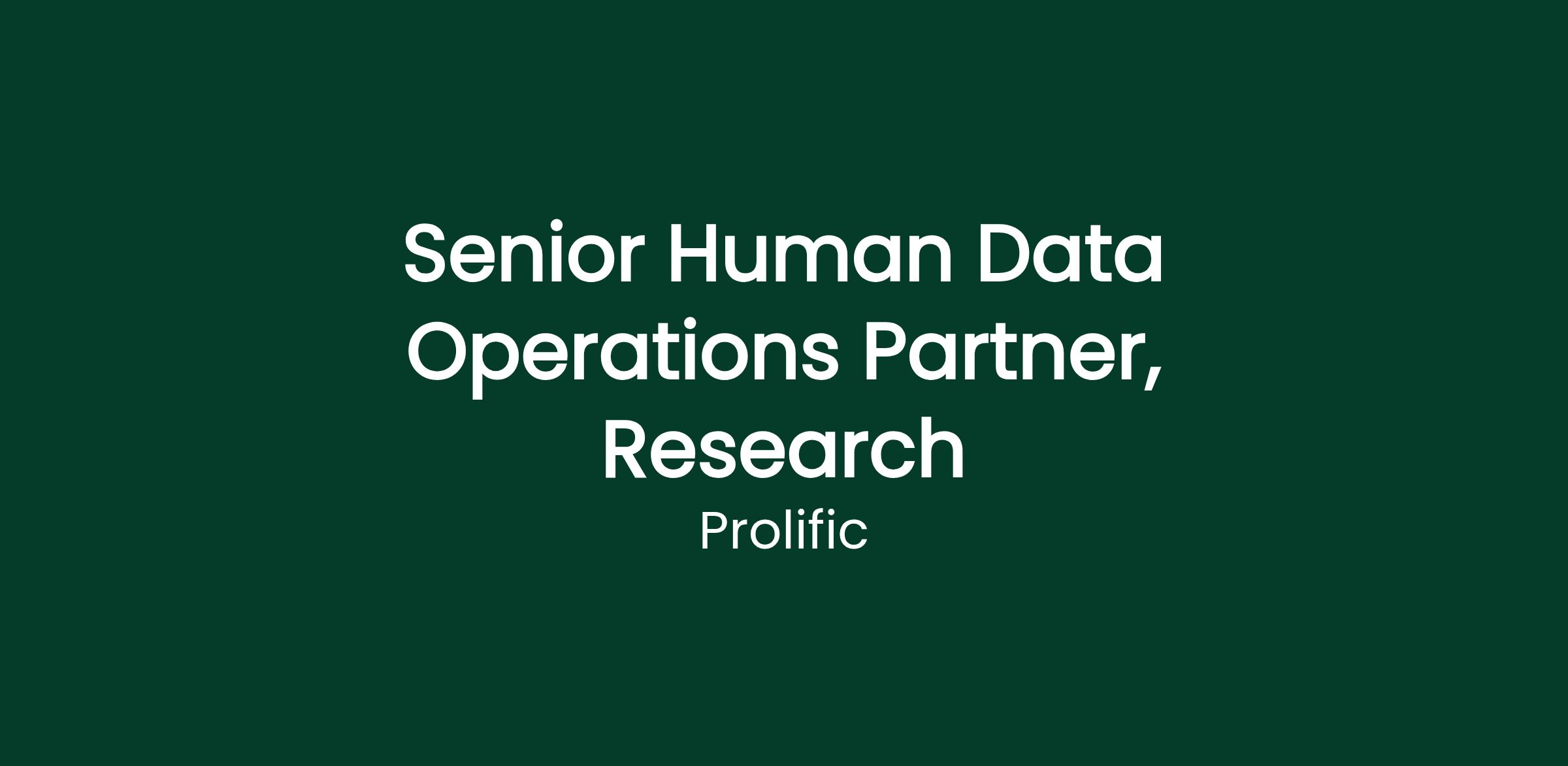 As a Senior Human Data Operations Partner (Research), you will own the operational success of complex and high-value research customer projects, while also helping shape the long-term capability of Prolific’s Research participant supply.