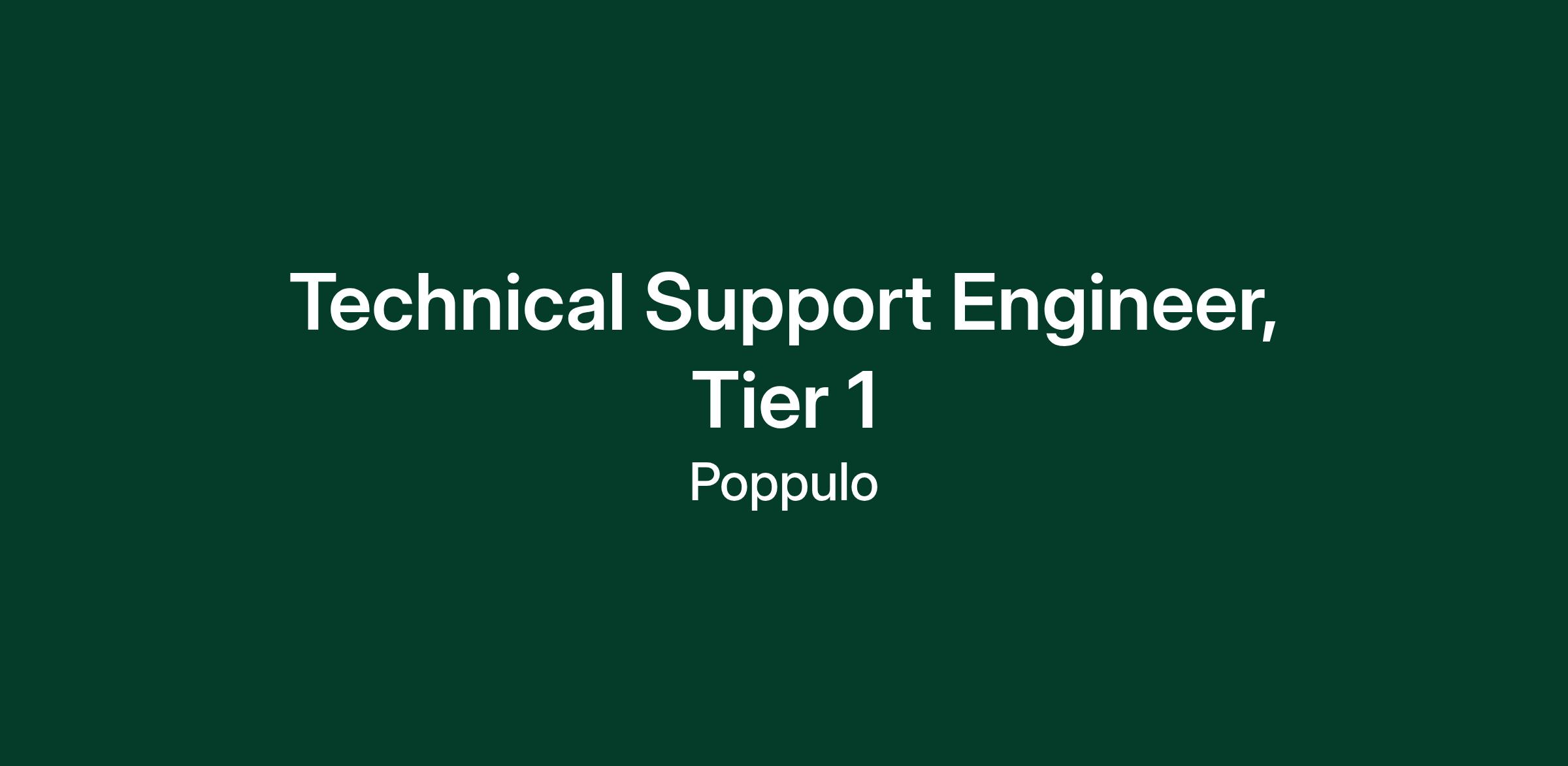 We’re looking for a Technical Support Engineer who’s passionate about solving problems, helping people, and learning new technologies. You’ll play a key role in supporting our customers by providing technical assistance and ensuring a great experience across Poppulo’s SaaS platform.