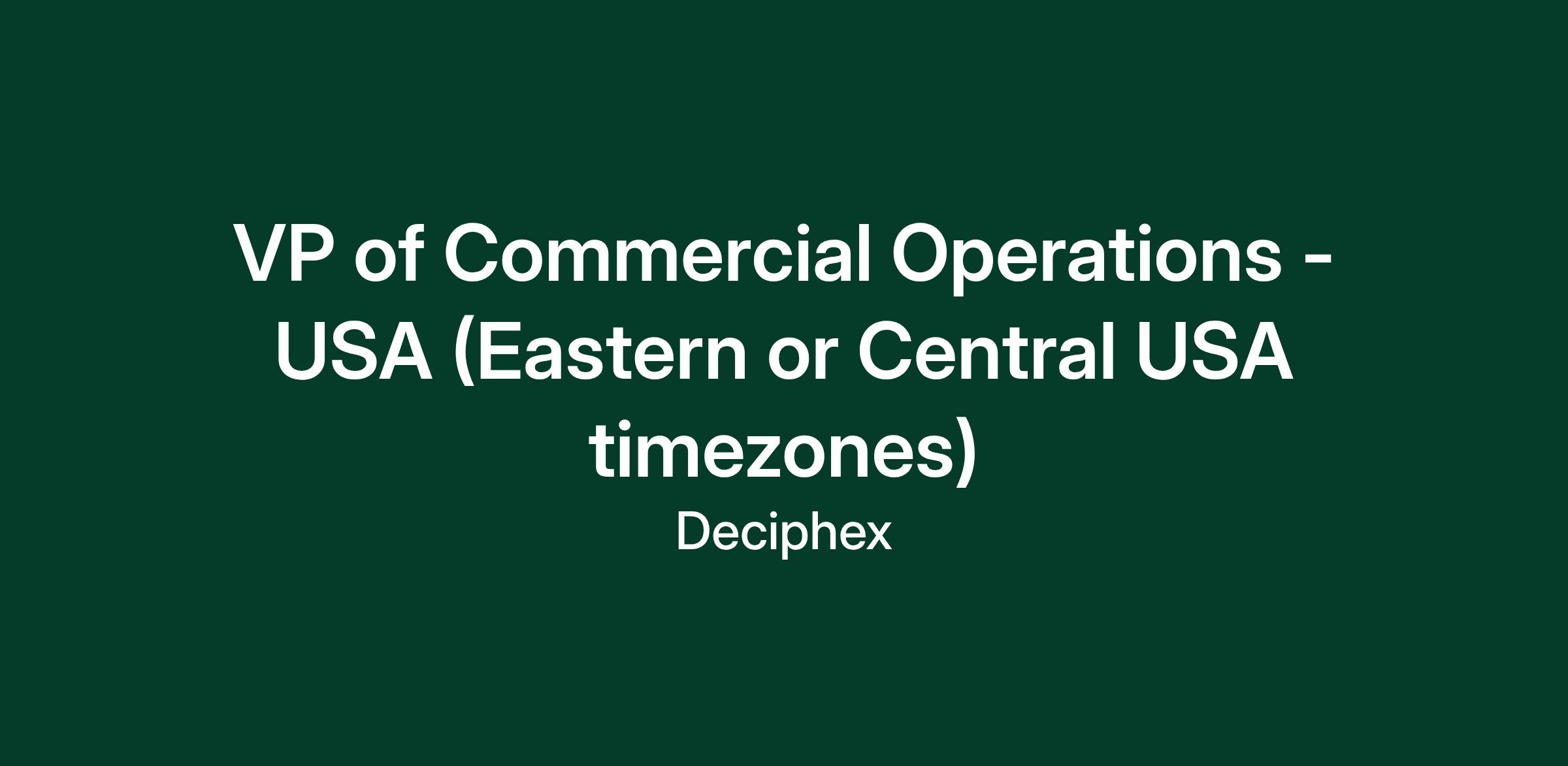 - The Vice President, Commercial Operations will lead our Diagnexia US commercial strategy and execution for North America -i.e. inclusive of Canada.